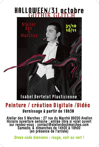 GOTHIK & GLITCH est une exposition multimédias d’Isabel Bertelot, peintre/plasticienne aux Frigos à Paris.